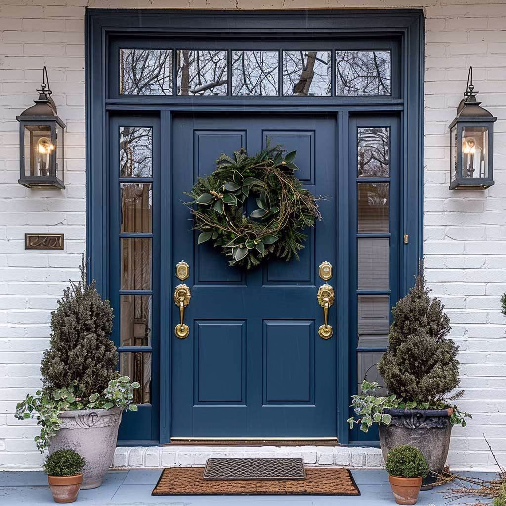 Mørkeblå inngangsdør – profesjonell maling av ytre dører av malerfirma